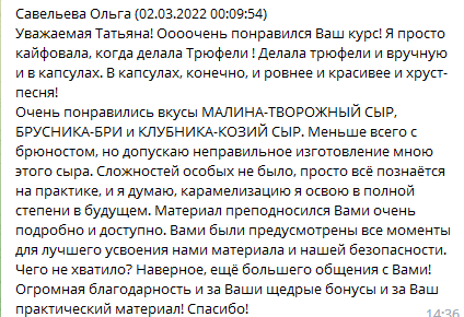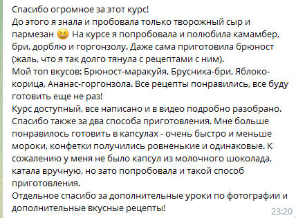 Быстрые ответы на вопросы по приготовлению и продвижению, чат остается после окончания курса навсегда!
