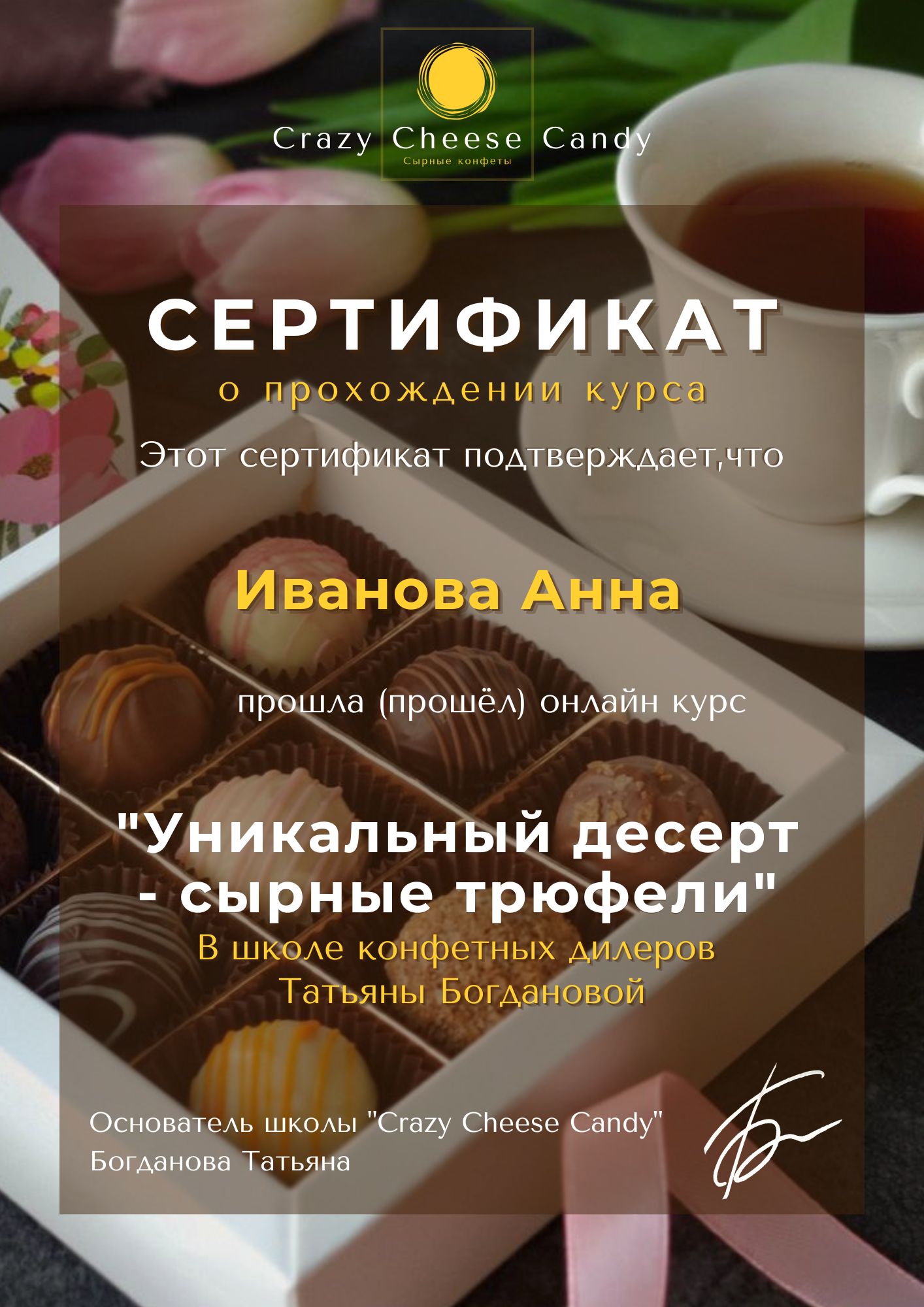 Я - профессиональный кондитер со стажем 9 лет и 3 года обучаю готовить сырные трюфели.
