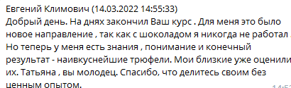Обратная связь в чате от Татьяны